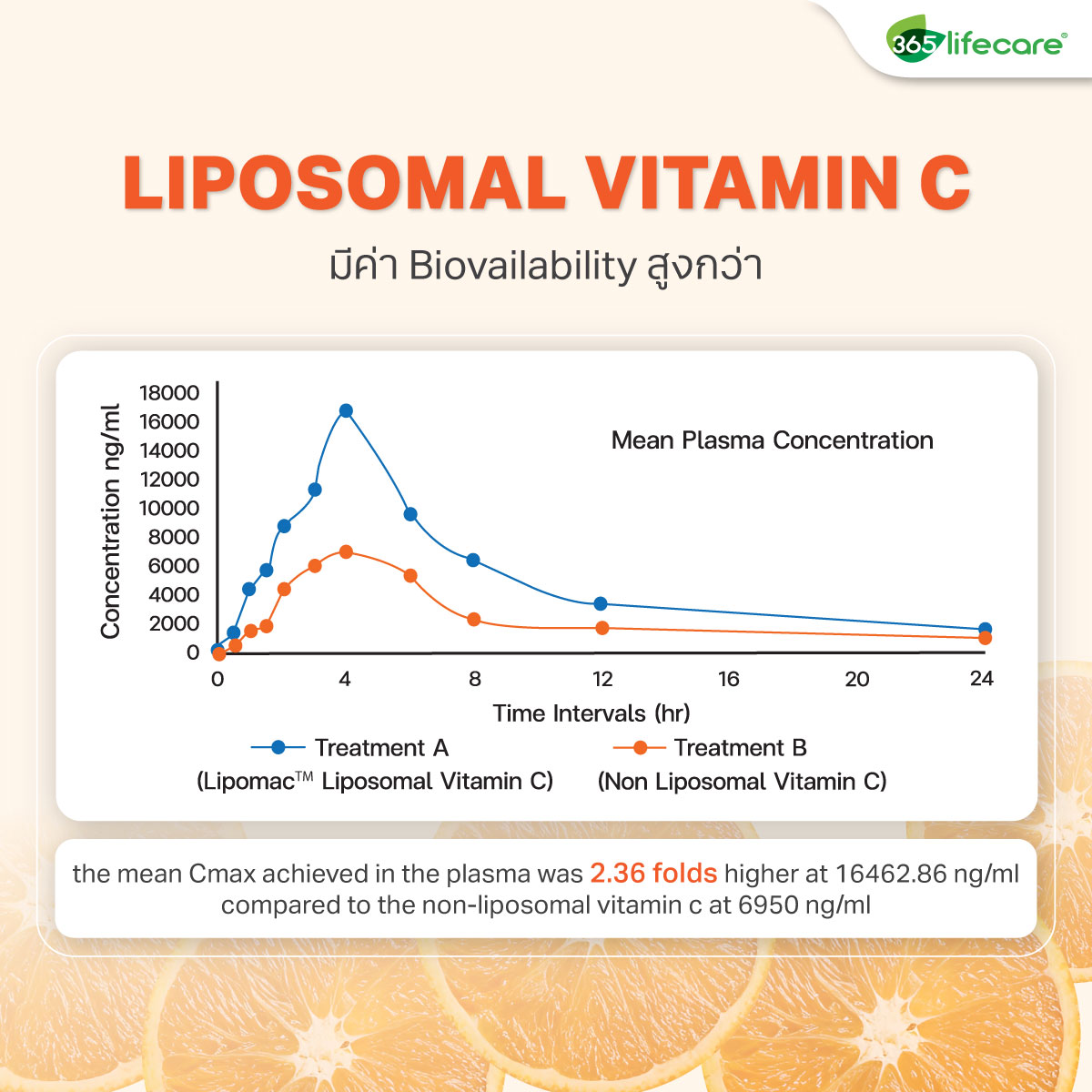 ✔ คงระดับวิตามินซีในเลือดได้นาน ออกฤทธิ์ต่อเนื่อง